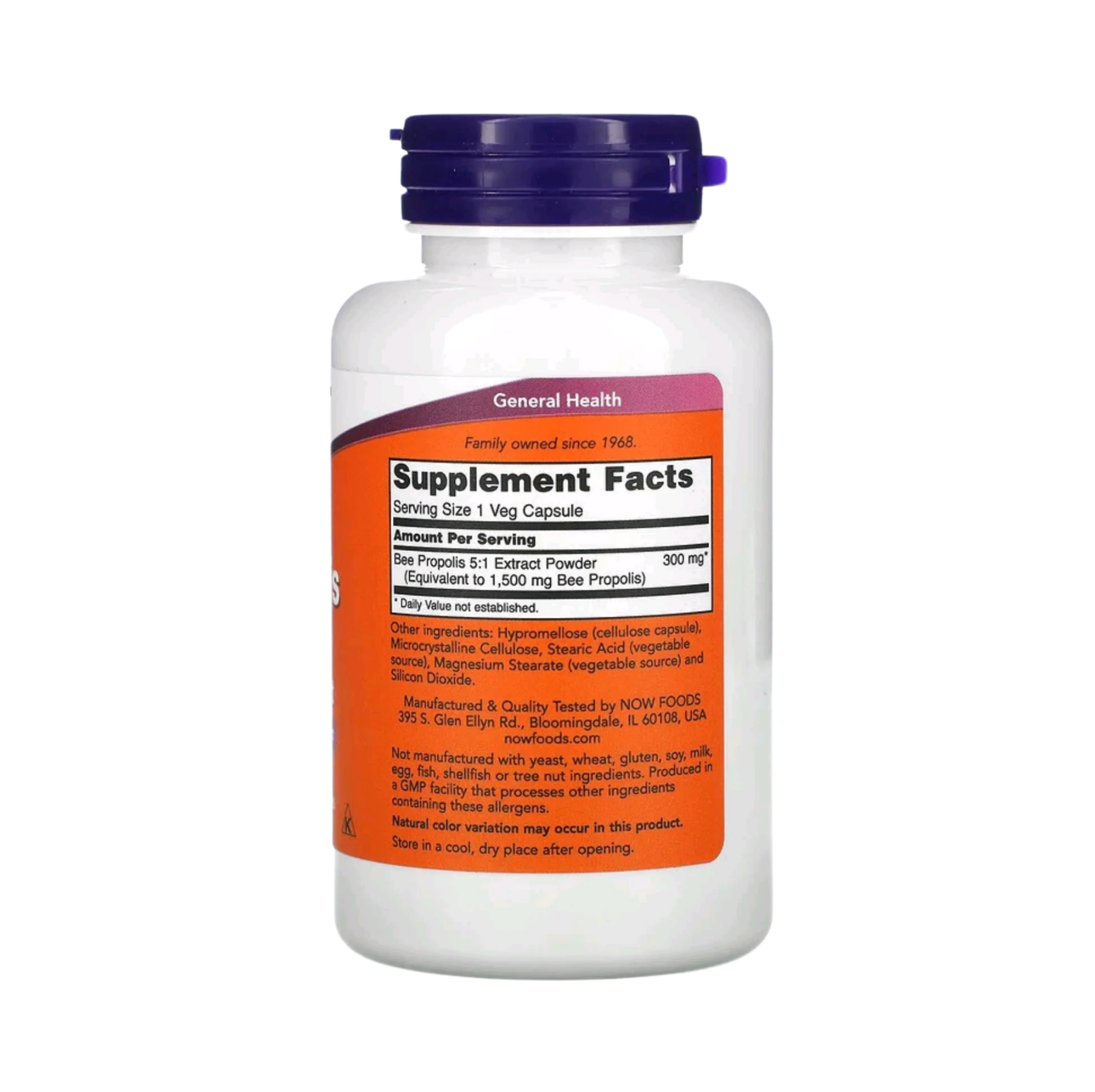 La propolis est un mélange de résines collectées par les abeilles à partir de bourgeons d’arbres, de sève et d’autres sources végétales. Elle est utilisée pour sceller les petites fissures de la ruche. La propolis sert à renforcer l’intégrité et la stabilité de la ruche, ainsi qu’à maintenir son état sanitaire. La propolis de NOW® est collectée par les apiculteurs dans des ruches actives et saines et possède de nombreux bioflavonoïdes naturels.