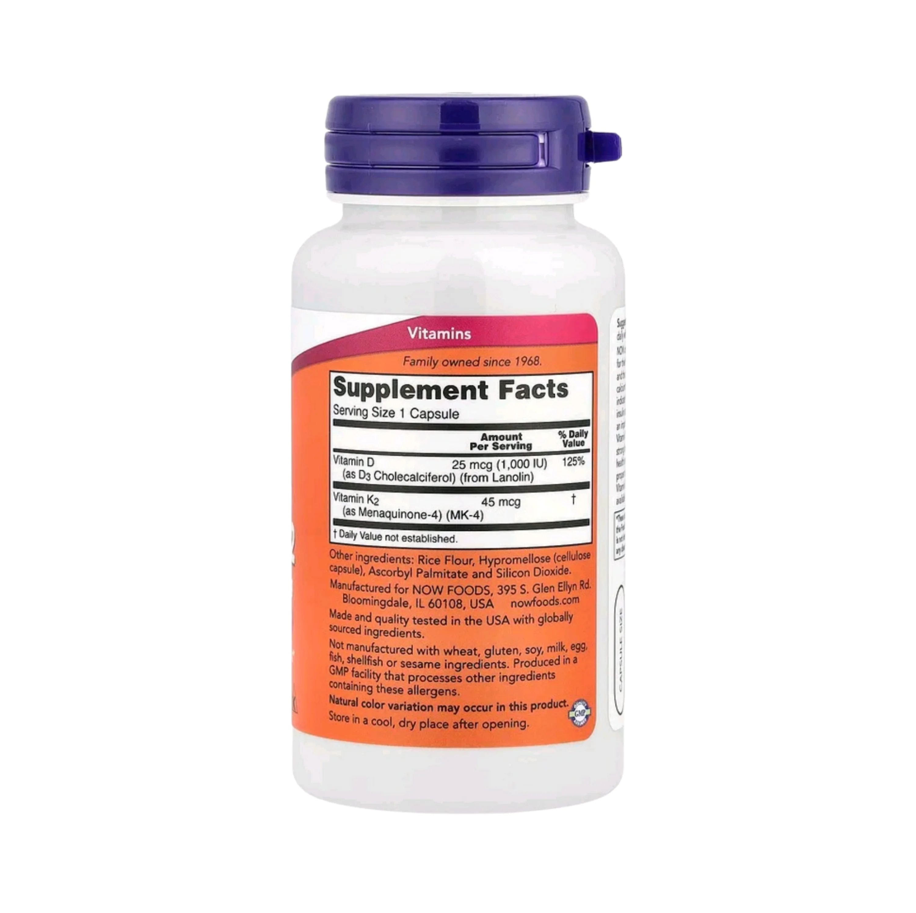 NOW combine deux nutriments ayant fait l’objet de recherches approfondies pour leur contribution à la santé des os, des dents et du système cardiovasculaire. La vitamine D3 favorise l’acheminement et l’absorption du calcium. Des études récentes indiquent que la vitamine D3 peut jouer un rôle dans l’action appropriée de l’insuline et le métabolisme du glucose. De plus, elle joue un rôle important au sein du système immunitaire. La vitamine K est essentielle à la formation d’une matrice osseuse saine et solide. Le rôle de la vitamine K dans la santé artérielle se résume à sa capacité à soutenir le métabolisme correct du calcium dans les structures vasculaires. La vitamine K2 est une forme facilement active et biologiquement disponible de vitamine K.